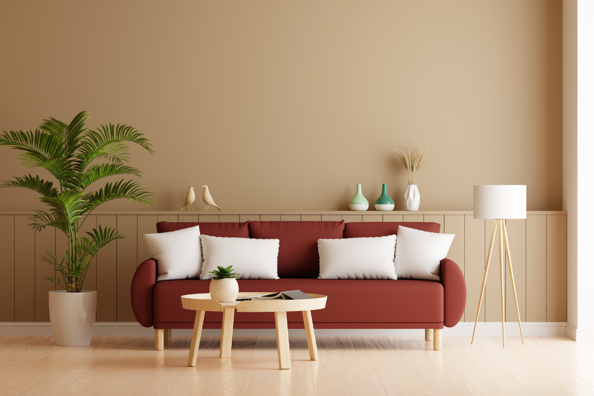- Burnt Orange Polished Concrete Wall: A polished, high-gloss concrete wall in a rich, burnt orange can create a statement piece in your lounge. This warm, inviting color beautifully reflects light, adding to the ambiance.