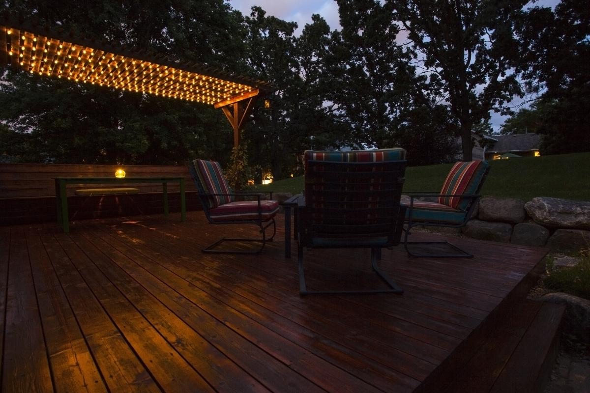 Hanging string lights is as simple as ABC. You can drape them along your deck rail or fix them from deck post to post. No transformative wiring needed. Even more, have you considered solar string lights? These lights harness sunlight to light up your patio, offering a low voltage alternative that cuts your energy bill.