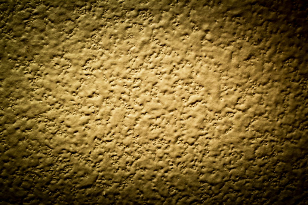 Named for its bumpy surface and popcorn texture, akin to the 70s-era popcorn ceiling, it is ideal for covering significant wall or ceiling imperfections. It’s made by applying a mixture of drywall compound, plaster, and styrofoam balls.